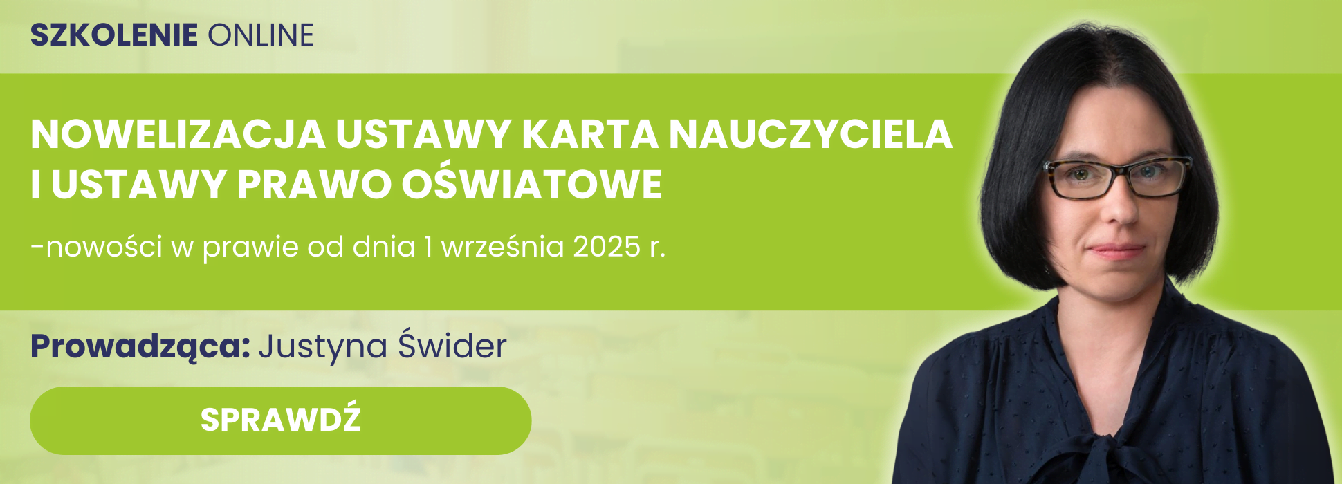 Kliknij grafikę poniżej i poznaj program szkolenia: Nowelizacja ustawy Karta Nauczyciela i ustawy Prawo oświatowe - nowości w prawie od dnia 1 września 2025 r.