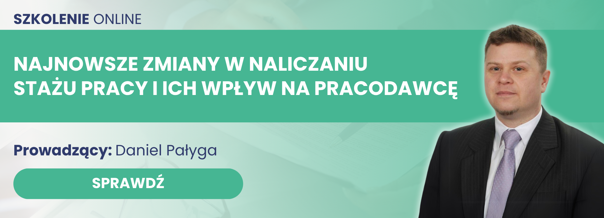 Kliknij grafikę poniżej i poznaj program szkolenia: Najnowsze zmiany w naliczaniu stażu pracy i ich wpływ na pracodawcę